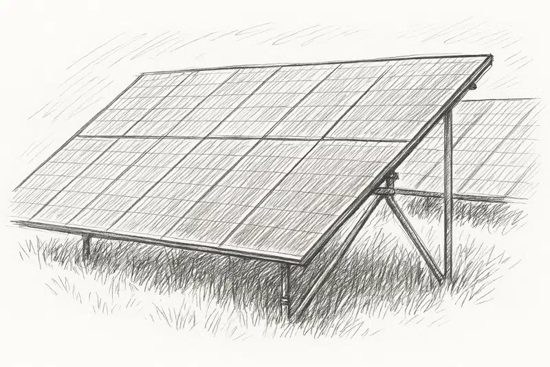 Et montagesystem holder solcellerne fast på taget, facaden eller jorden i den rette vinkel for optimal solindfangning. Kabelføring sørger for sikker transport af strømmen fra solcellerne til inverteren og videre til elnettet eller batterier.